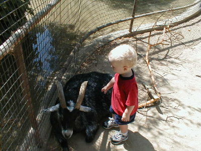 Petting a goat at the Oakland Zoo