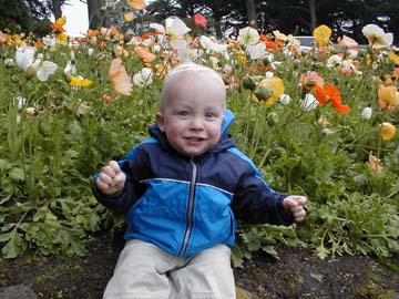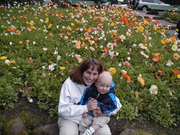Andy posing in front of the flowers