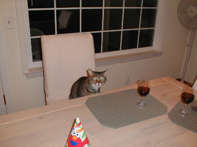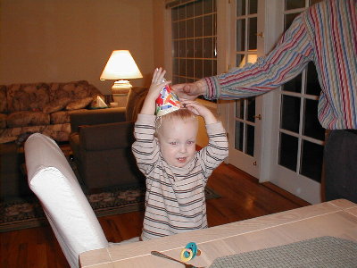 with Mommy, Daddy, Andy, & Amelia. We wore party hats, sang Happy