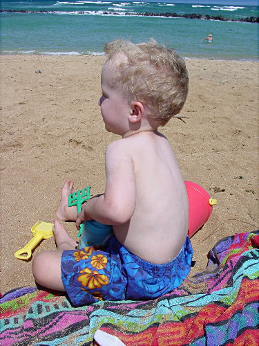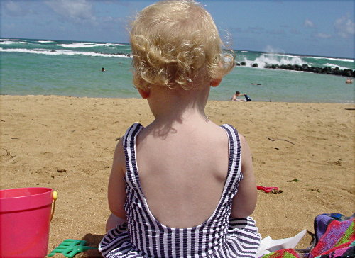 on the beach. Here she is watching daddy snorkel at Lydgate State