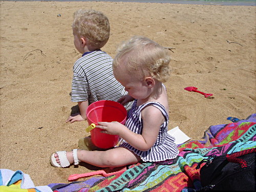 and less obvious than his sister. And enough 50 SPF sunblock was