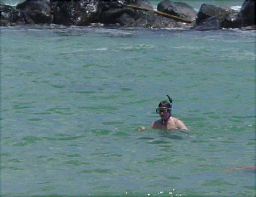 Snorkel Daddy, getting ready to explore the underwater world of Lydgate