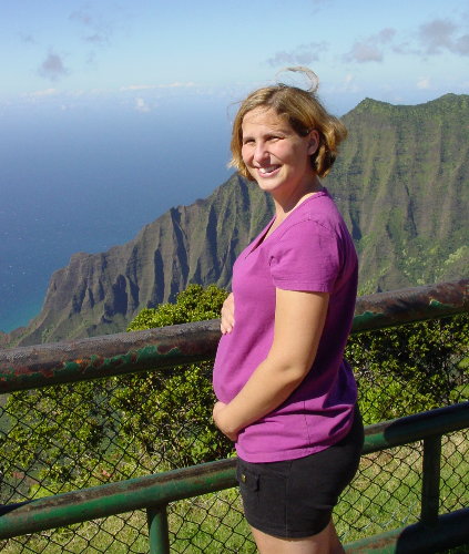 Mommy & 23 wk baby (BNG) in front of the view.