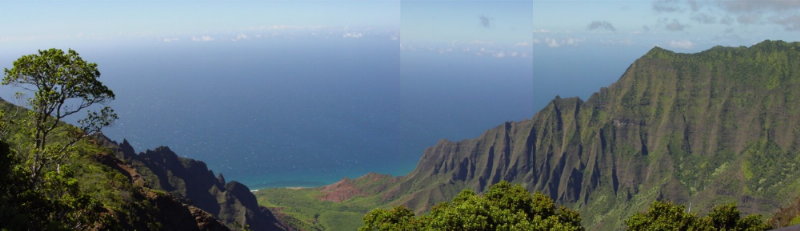 Up the road from Waimea Canyon, we came to Koke'e State Park, where we found this magnificant view from Kalalau lookout.