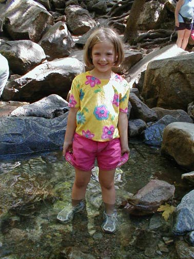 Cara playing in freezing cold water